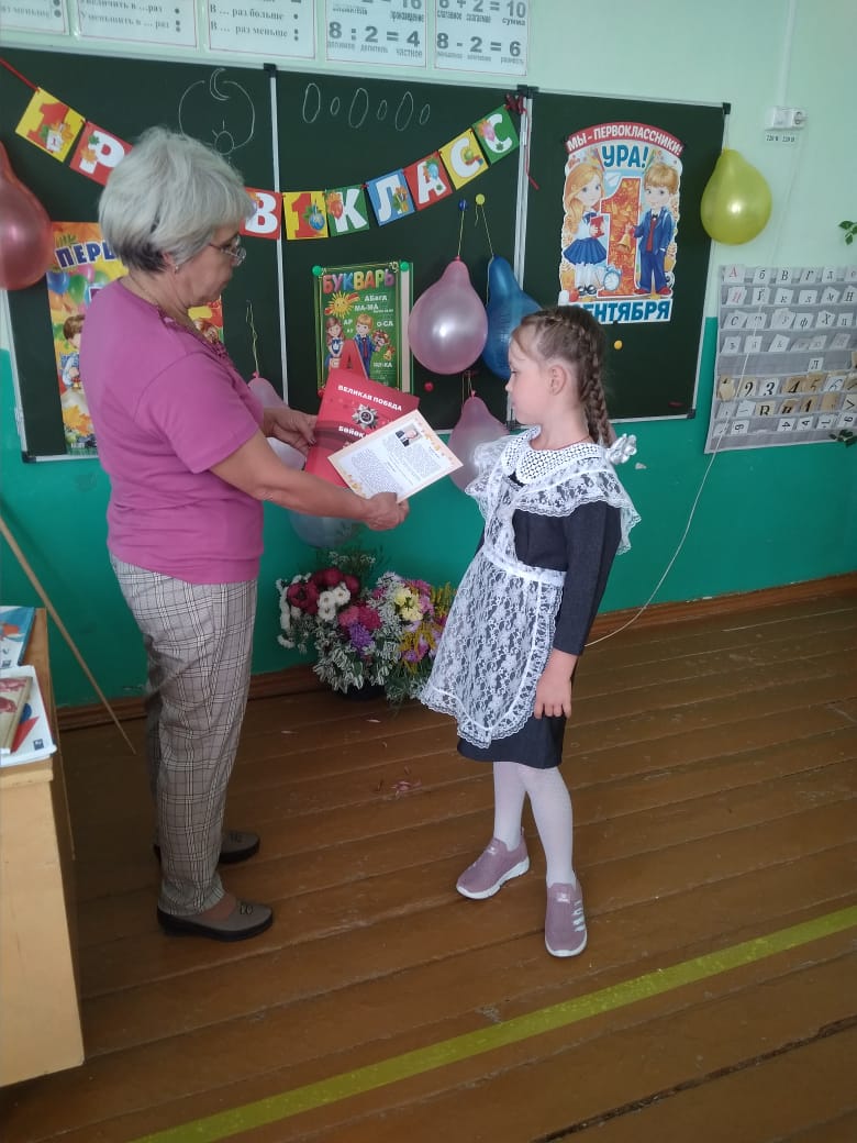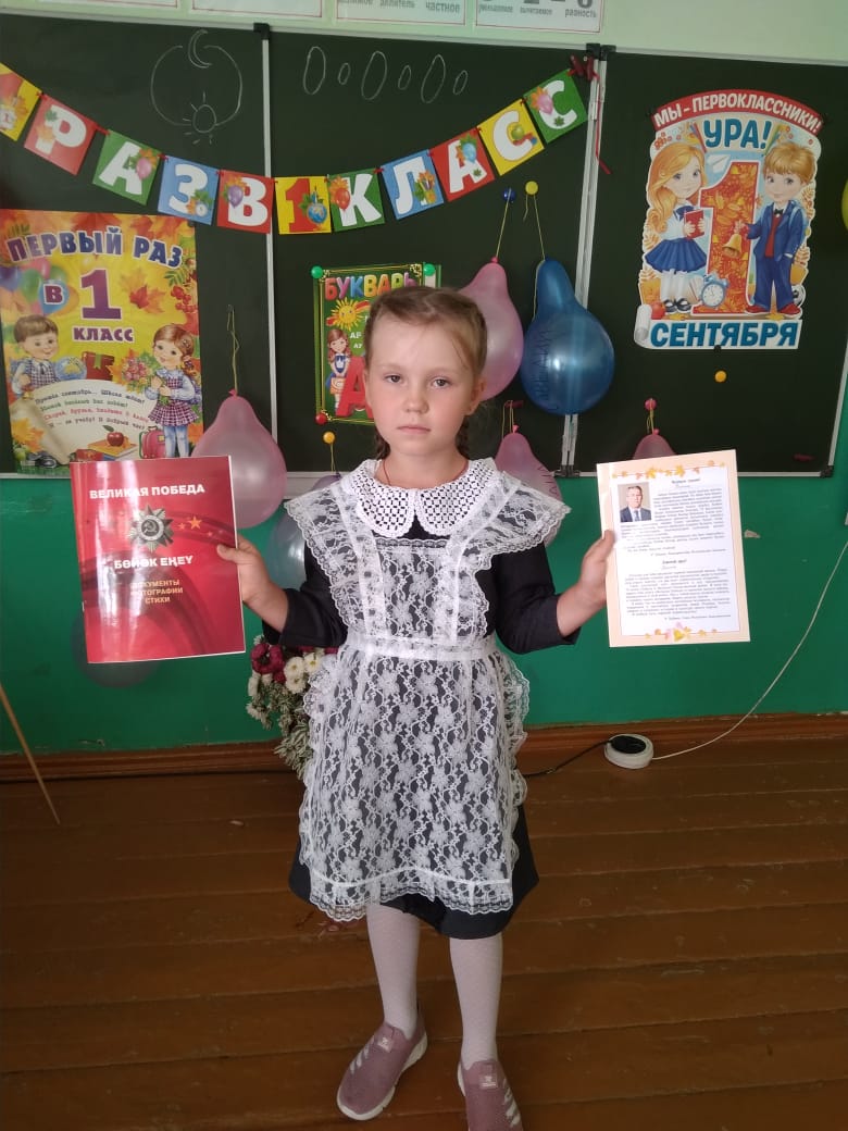 Обучающиеся 1 классов МОБУ СОШ с. имени Восьмое Марта получили в подарок книгу "Великая Победа. Бөйөк Еңеү»