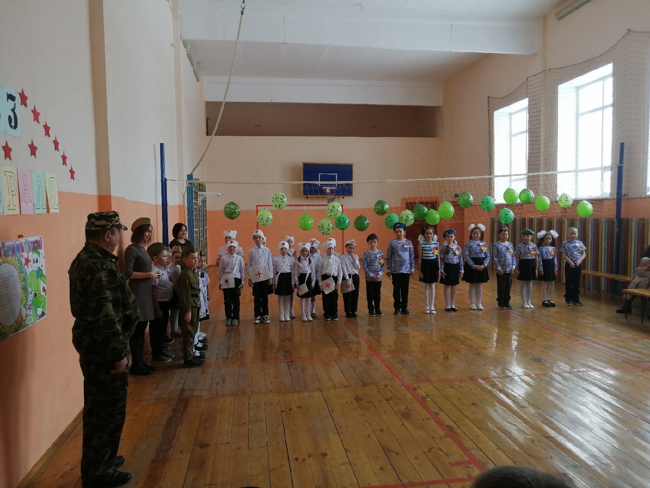 По традиции каждый год в месячник военно-патриотической работы в школе проходит смотр строя и песни. 22 февраля прошёл смотр строя и песни среди учащихся начальных классов. В начале праздника преподаватель ОБЖ Висильев С. Н. поздравил всех с наступающим праздником Днём защитника Отечества и пожелал ребятам удачи. На смотре были моряки, медики, спецназовцы и солдаты. Единая форма, красивая осанка, девиз и речевка- все радовало глаз. Ребята подготовились по высшему классу. После смотра команды участвовали в разных конкурсах. А за участие в смотре строя и песни ребята получили призовые места.