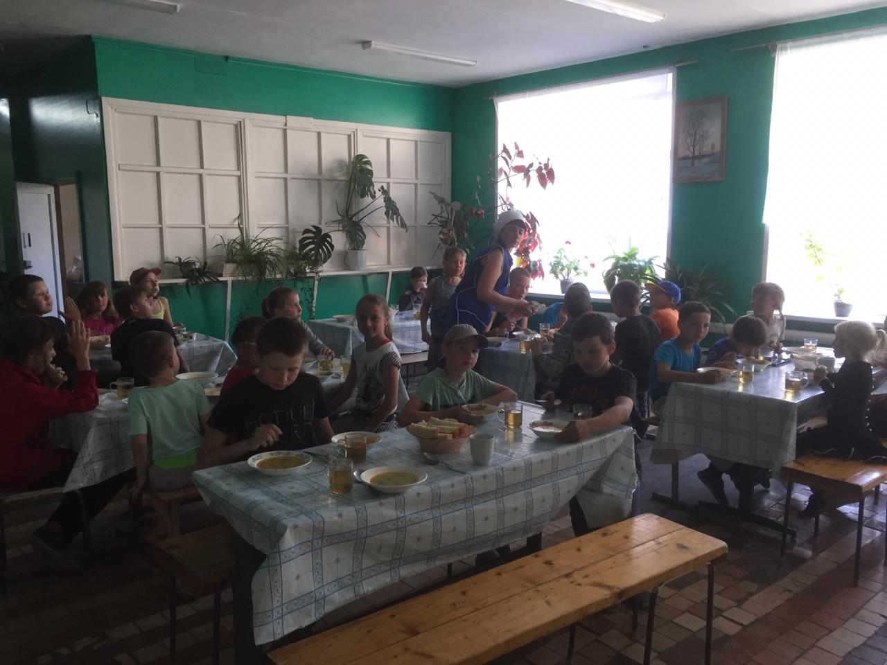 В лагере работает профессиональный повар Гуртаченко Наталья Александровна, обеспечивающий качественное приготовление пищи. Кормят детей два раза в день: завтрак, обед. Обязательно в рацион питания входят фрукты, овощи и сладости. Питание в лагере отличное, судя по тому, что все тарелки остаются пустыми, ребятам, несомненно, нравится, то, что им дают на завтрак. В лагере «Улыбка» хорошее воспитание, потому что каждый ребенок самостоятельно убирает со стола свою тарелку.