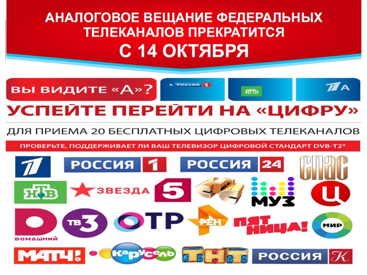 14 октября 2019 года аналоговое телевещание 20-ти федеральных телеканалов будет отключено