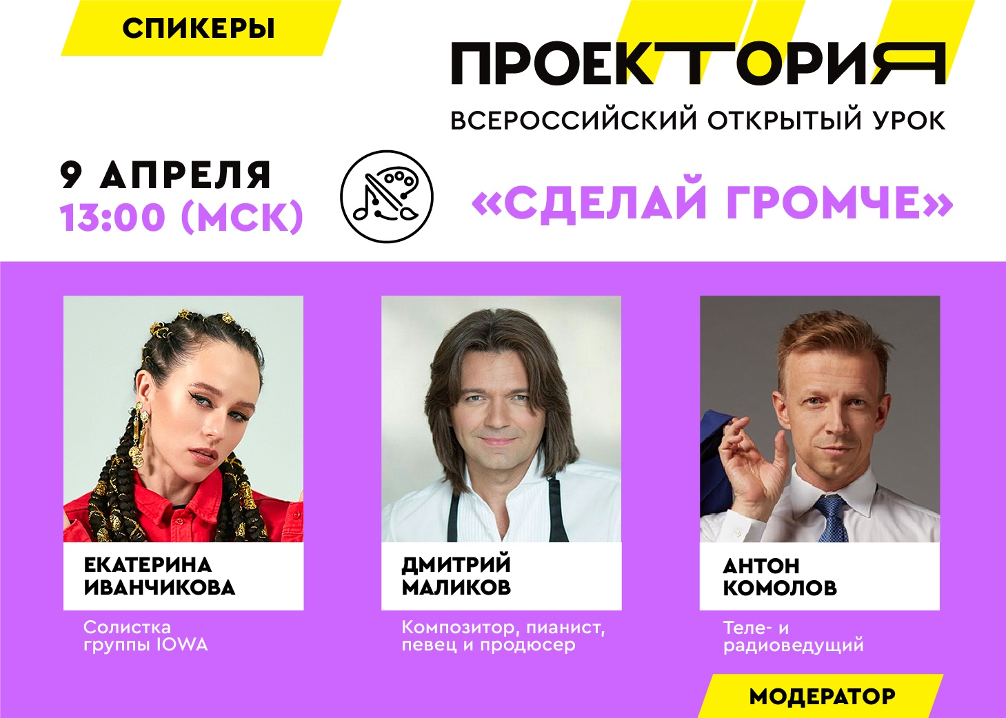 9 апреля 2020 в 13 часов 00 минут по московскому времени состоялся Всероссийский открытый урок «ПроеКТОриЯ» в рамках федерального проекта «Успех каждого ребенка» национального проекта «Образование». Открытый урок на тему: «Сделай громче»