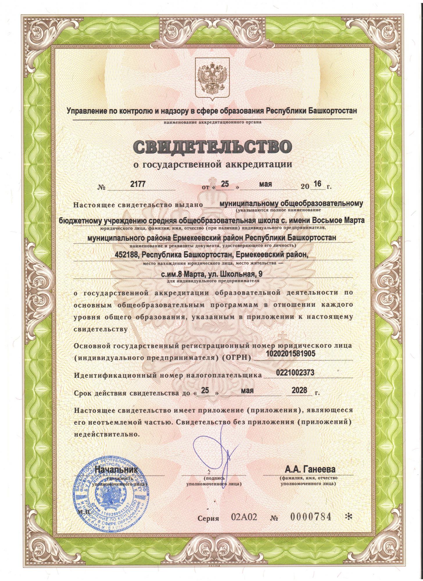 Муниципальное общеобразовательное бюджетное учреждение средняя общеобразовательная школа с. имени Восьмое Марта муниципального района Ермекеевский район Республики Башкортостан