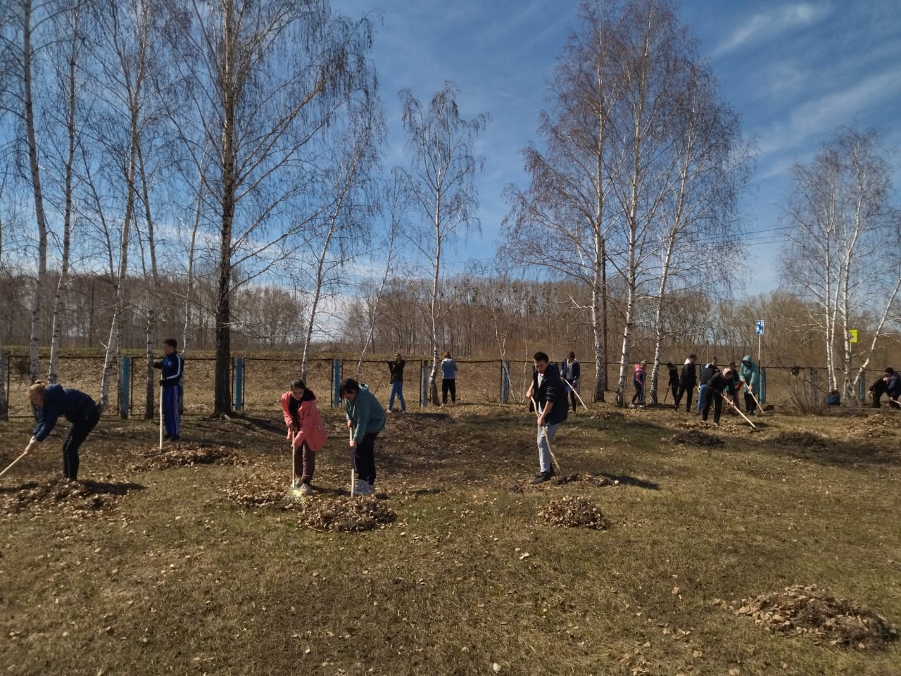 22 апреля 2022 года учителя и учащиеся МОБУ СОШ с.имени Восьмое Марта участвовали в субботнике по очистке территории школы от прошлогодней листвы и мусора.